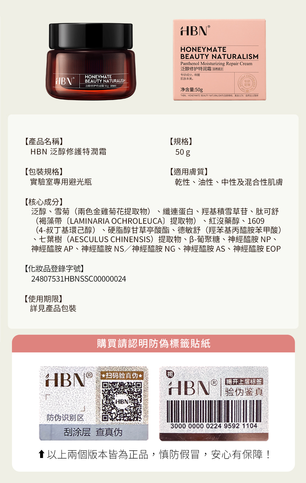 品名:【HBN官方】泛醇修護特潤霜 50g(B5面霜3.0)